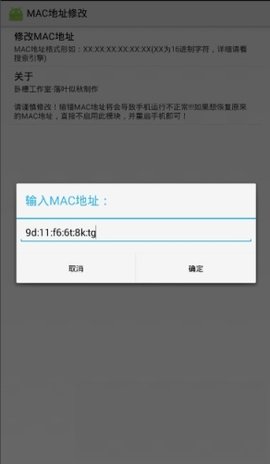 操作步骤:点击"修改MAC地址"按钮,输入新的MAC地址即可完成修改。