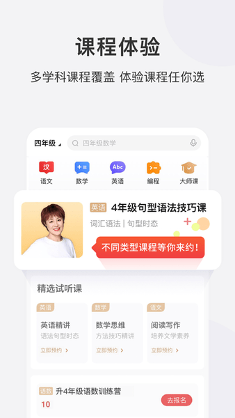 作为国内较早将"互联网"与"教育"相结合的中小学在线学习平台,学而思网校覆盖小学至高中全学科课程,包括语文、数学、英语、理化生、史地政等主科,以及编程、人文、历史、科学、艺术等素质类课程。采用双师教学模式,由主讲老师直播授课,辅导老师提供专属辅导,确保每位学生都能获得高效的学习体验。