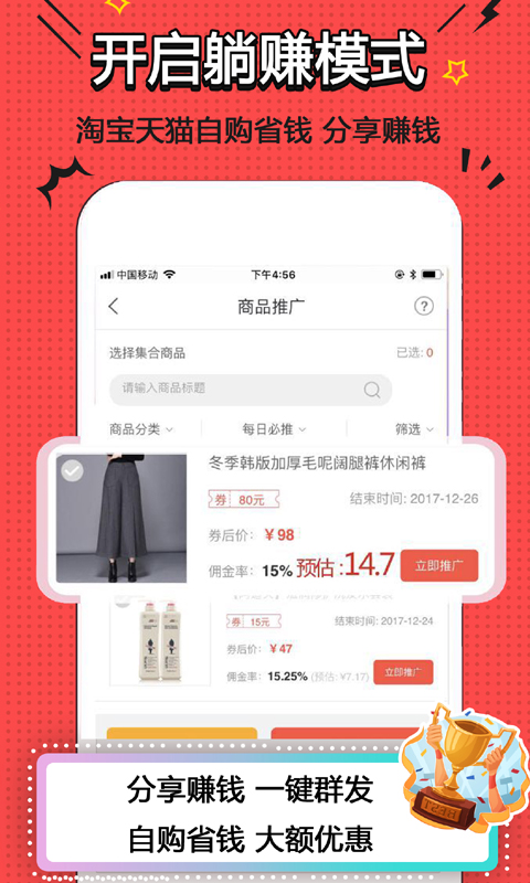 《赚钱》分享赚取佣金,操作简单。分享给好友,好友省钱,你赚钱。