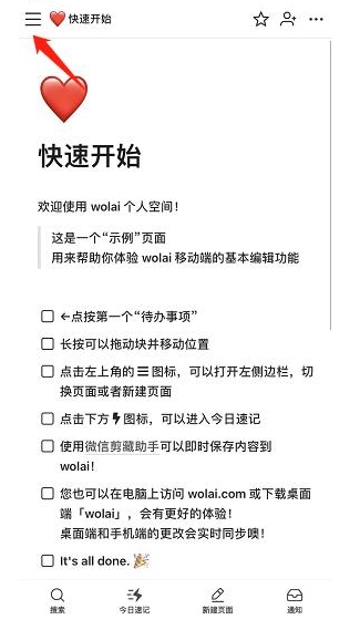 wolai我来笔记是一款功能强大的笔记管理工具,能够帮助用户高效记录和整理各类信息。通过简洁直观的界面,用户可以快速创建新页面并开始编辑,同时还能在个人空间中轻松管理大量笔记内容。软件提供表格、看板、表单等多种视图模式,满足不同场景下的使用需求。