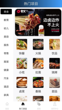 设计到了美食、美容和服务等等,用户可以看到所有的优质投资加盟信息;