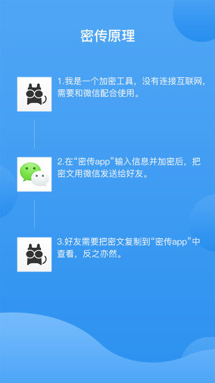 支持密文双向转换,好友可将加密内容复制到密传app进行解密,反之亦然