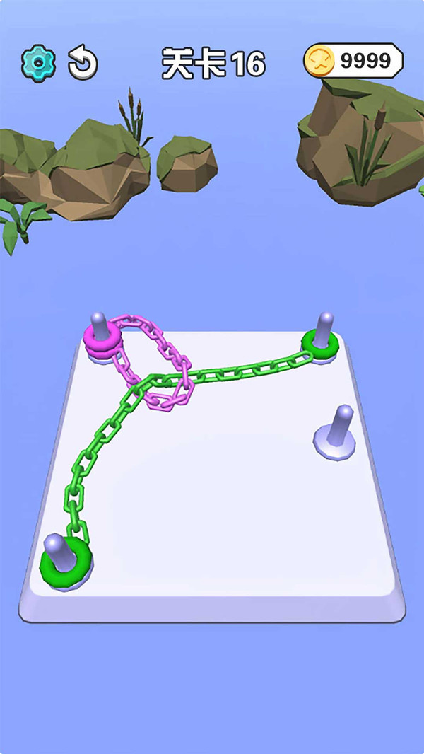 《绳结大师》是一款以解绳结为核心玩法的益智游戏,其灵感来源于全球流行的解谜挑战。玩家需要巧妙地将错综复杂的链条逐一分离,看似简单的目标背后隐藏着层层递进的烧脑关卡。游戏在原版基础上大幅拓展了场景和关卡设计,无论是孩子还是成人都能享受这份独特的解绳乐趣。