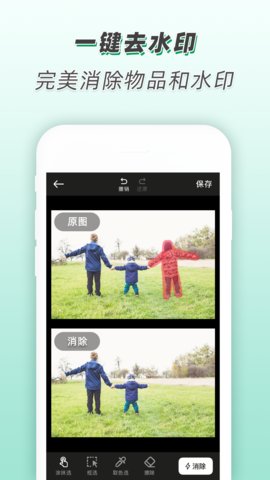 【智能工具】配备AI智能抠图功能,支持发丝级人像处理;提供专业去水印工具;内置海量艺术字与相框样式