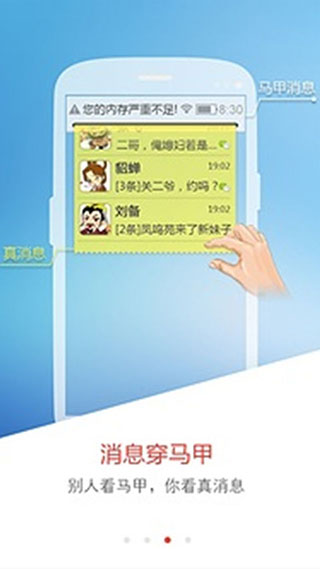 公开空间收到私密信息时,系统会巧妙提示"内存不足"。查看真实内容只需进入私密空间,既保护隐私又不露破绽。