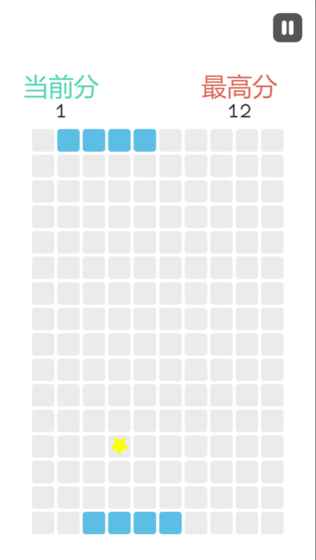 刚出生的方块为贪吃蛇状态,滑动屏幕来操控蛇的上下左右移动,在该状态下碰到边界和方块游戏结束