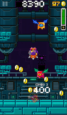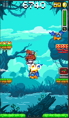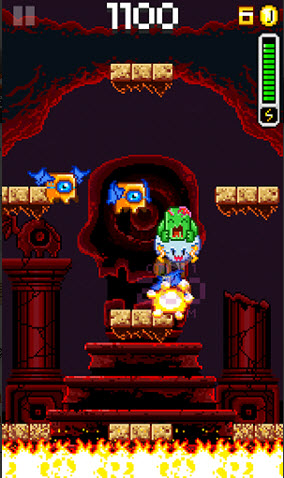 游戏操作很简单,通过摇晃屏幕来进行左右方向控制,玩法上颇像冒险岛的规则,脚踩中怪物完成得分。可玩性是差了点,但既然主打牌自然也将彻头彻尾。对于一款5.5M的游戏,我们不该奢求太多,但对于12元的售价,这是等菜吧。