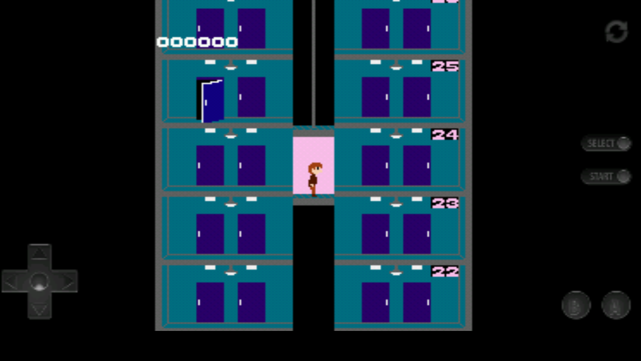 游戏操作简单但充满策略性:奥托可以使用手枪左右移动、跳跃、蹲下和射击。在电梯内时,玩家可以控制电梯上下移动,但无法进行蹲下动作。奥托还能在电梯井中灵活穿梭,可以跳到电梯顶部,但无法直接控制电梯的横向移动。自动扶梯也是重要的移动工具,通过上下操作就能让奥托搭乘。