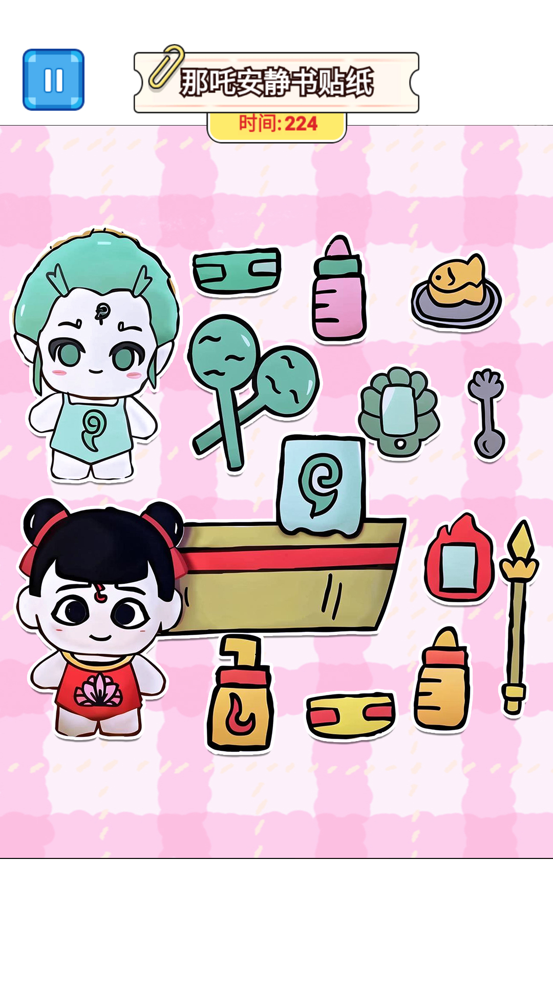 《哪吒安静书》是一款充满创意与乐趣的拼贴游戏,以家喻户晓的神话角色哪吒为核心,带来丰富的贴纸素材和精美场景图册。玩家只需按照提示,将贴纸巧妙地拼贴到图册中,即可创作出独具特色的画面,在轻松愉快的体验中重温哪吒的经典故事。
