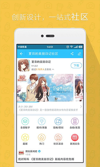 游戏社区,自动匹配你手机中安装的游戏,打开即可马上逛社区。一站式设计,下载,交流,资讯,礼包……一个社区,全部搞定。