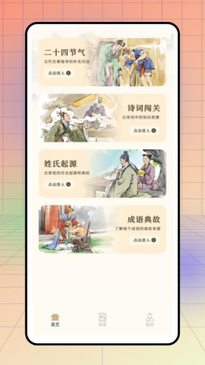 海量诗词知识,聚集了众多经典作品与文化资料,用户可以在平台上自由选择并在线学习,进一步丰富个人学识。