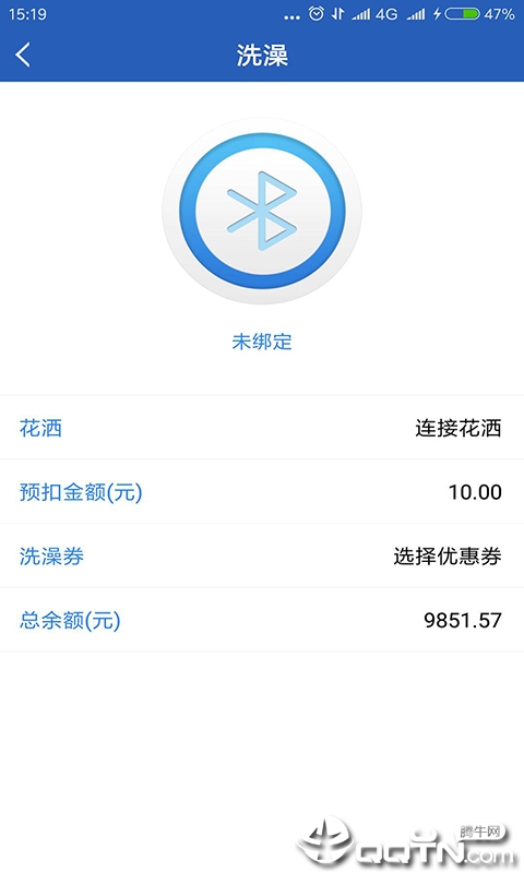 洗澡:手机连接蓝牙设备,控制设备开关、计费