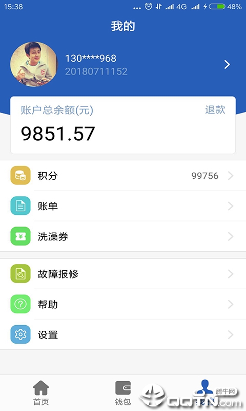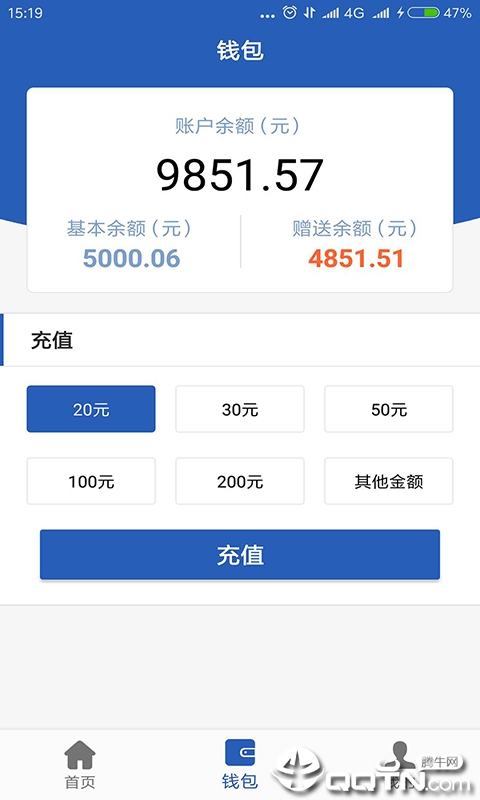 钱包:个人金额展示以及充值入口提供