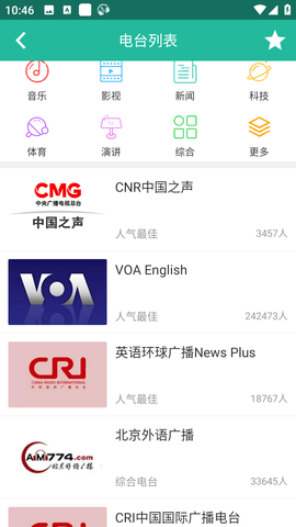 支持后台播放功能,用户可以在使用其他应用时继续收听节目。应用内收录了全球各地的优质电台资源,让用户轻松找到自己喜欢的电台内容。每日精选人气电台推荐,帮助用户快速发现优质节目。