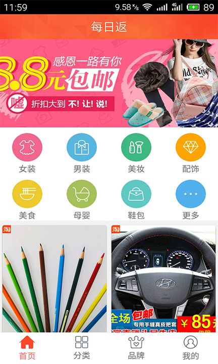 每日返精心为您打造的手机客户端,覆盖女装、、亲子、母婴、郊游必备、化妆品、鞋包、数码、创意配饰、家居等多种品类,每天使用每日返,与每日返一起"惠享生活"。