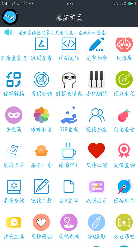 包含制作二维码、搜音乐、搜头像、制作图标、点亮黄钻、等等常用功能;
