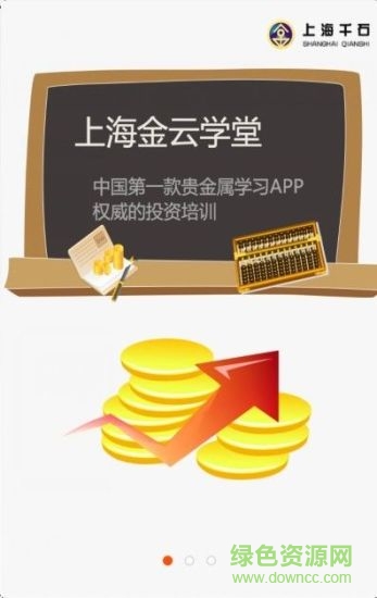 "上海金"云学堂移动端APP是上海千石公司在成功运营GOLD24.CN黄金在线学习平台的基础上,顺应移动互联网发展趋势所开发的移动学习系统。该应用软件涵盖安卓版(android)和苹果版(ios)两大主流系统,适用于智能手机、平板电脑等。"上海金"云学堂可以帮助用户在任何时间、任何地点进行移动联网学习,用户也可以通过下载功能实现离线学习,并在联网后自动同步学习记录。上海千石投资发展有限公司作为上海黄金交易所授权培训机构,特此研发上海金云学堂并致力于打造免费金融投资移动互联网培训平台,免费提供学员在线学习并定期或不定期出品学习课件供学员学习。