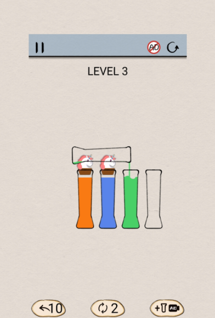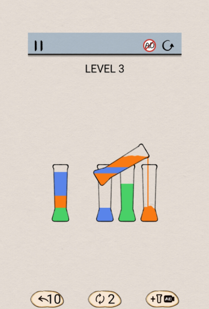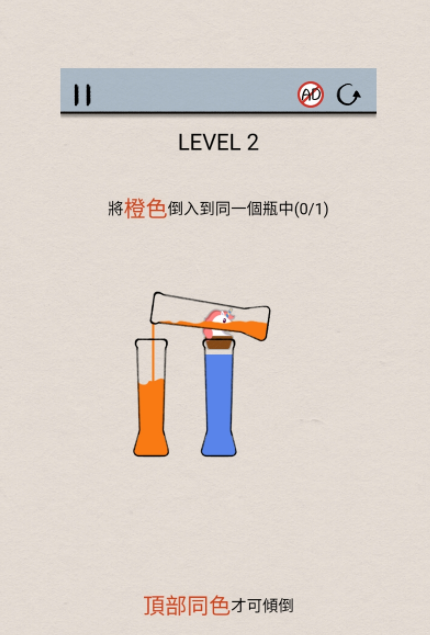 你需要储备一定的空间来完成其他颜色水的放置,完成各类关卡的冲击。