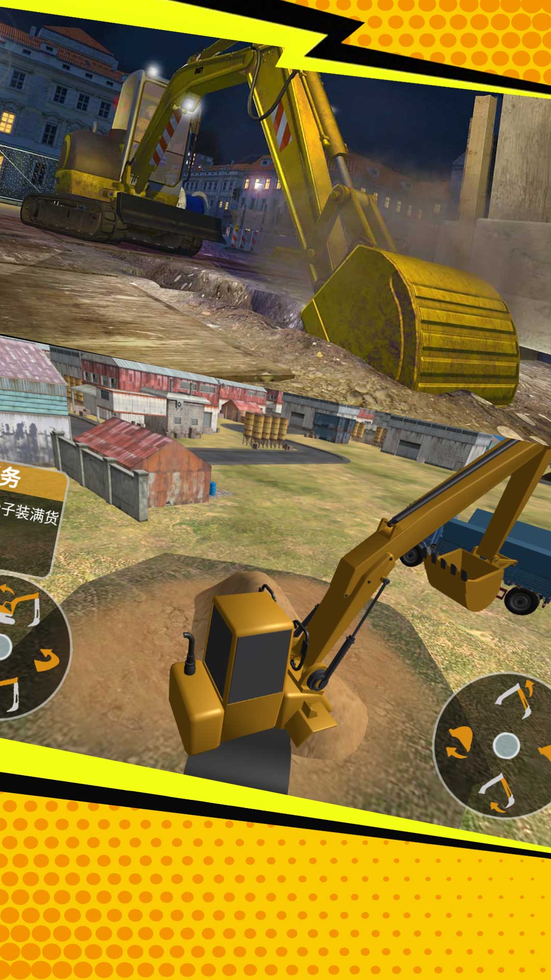 游戏提供简单易懂的操作指引,新手也能快速上手。通过虚拟摇杆和按键组合,玩家可以精准控制挖掘机的各项功能。
