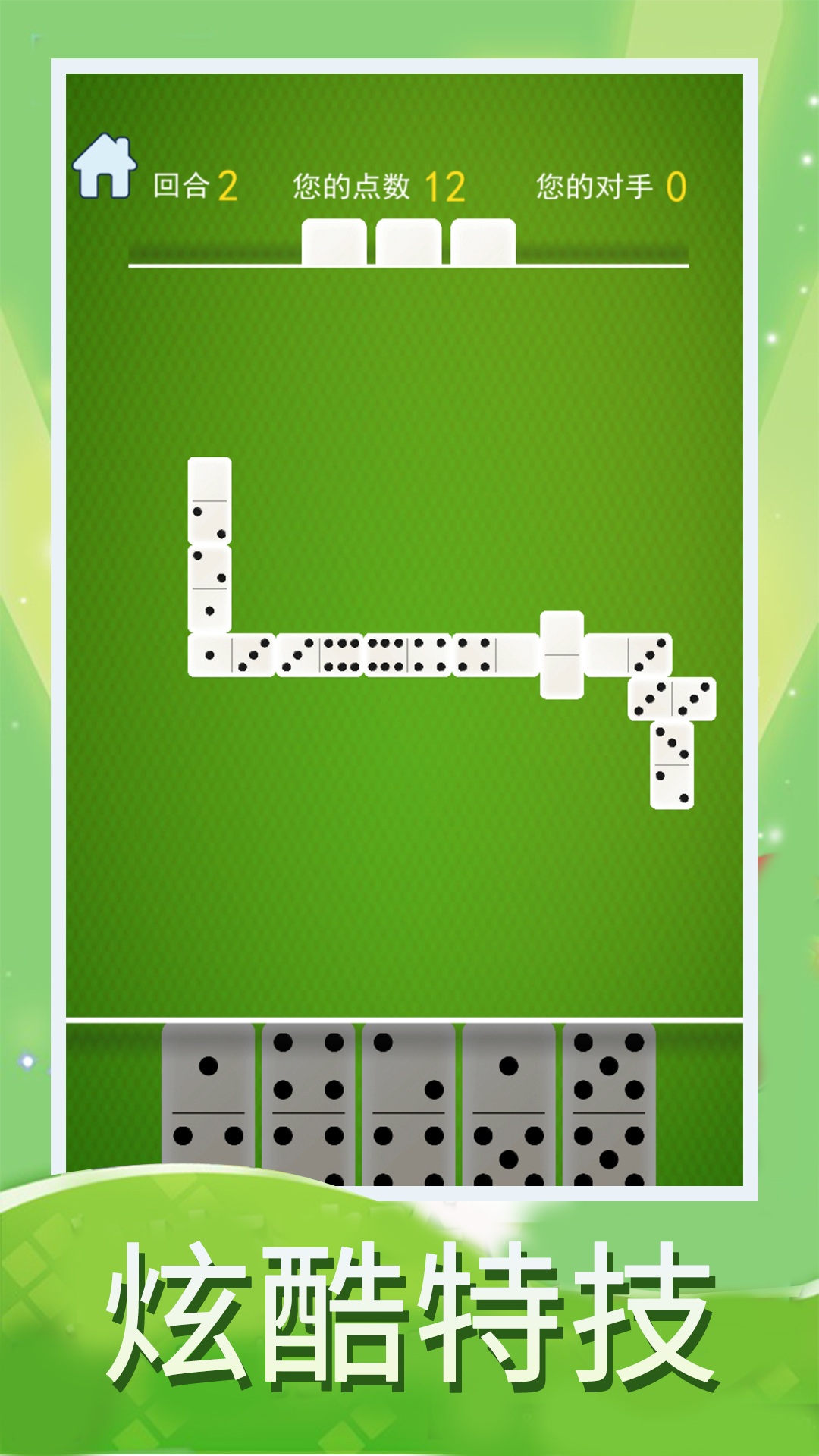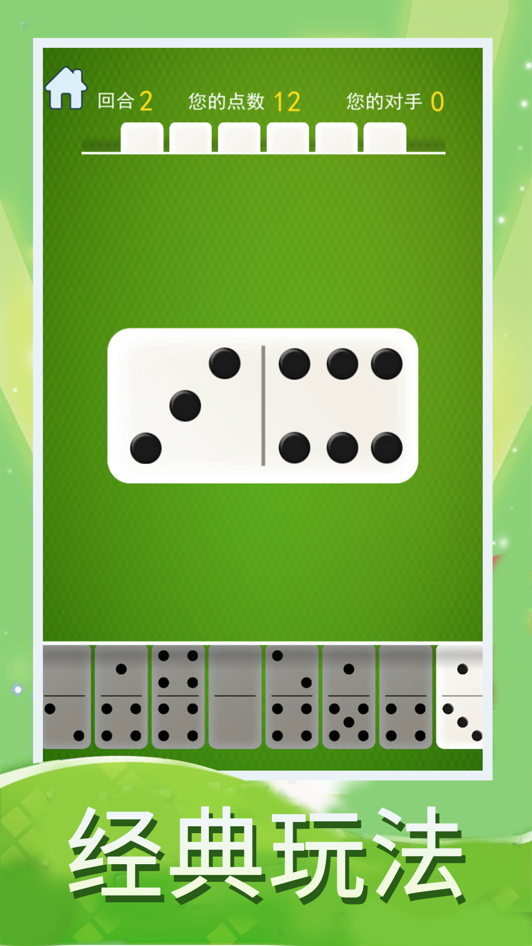 Domino是一款风靡全球的骨牌接龙游戏。游戏采用双人对战模式,每位玩家开局会获得若干骨牌。对战双方需要轮流将手中的骨牌与桌面上的骨牌进行对接,两张骨牌相连的一端必须显示相同的牌码数字。游戏特别设计了两种趣味玩法:一种是允许玩家从牌堆中抽取新牌的抽牌玩法,另一种是考验策略的堵住玩法,玩家可以通过巧妙出牌来限制对手的行动。