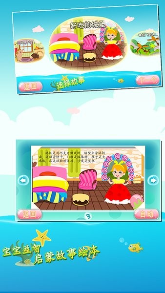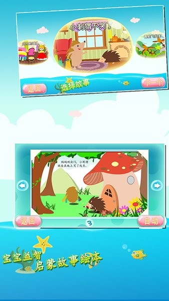 互动体验:支持自动播放和手动翻页,色彩鲜明的可爱画风培养孩子的色彩感知能力。