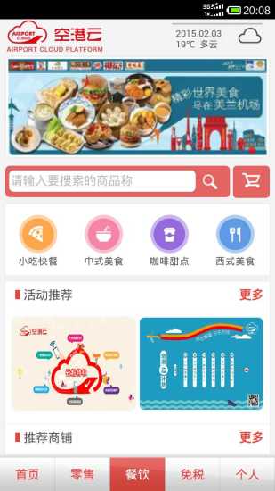 旅客可通过餐饮模块线上购买机场多家店铺所推出的主打精美餐饮产品并享受折扣价;