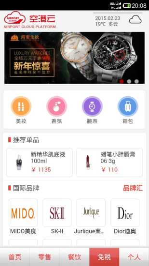 空港云产品的主要受众群体是机场旅客,该款APP共包含5大功能模块(免税、零售、餐饮、个人中心、机场服务);