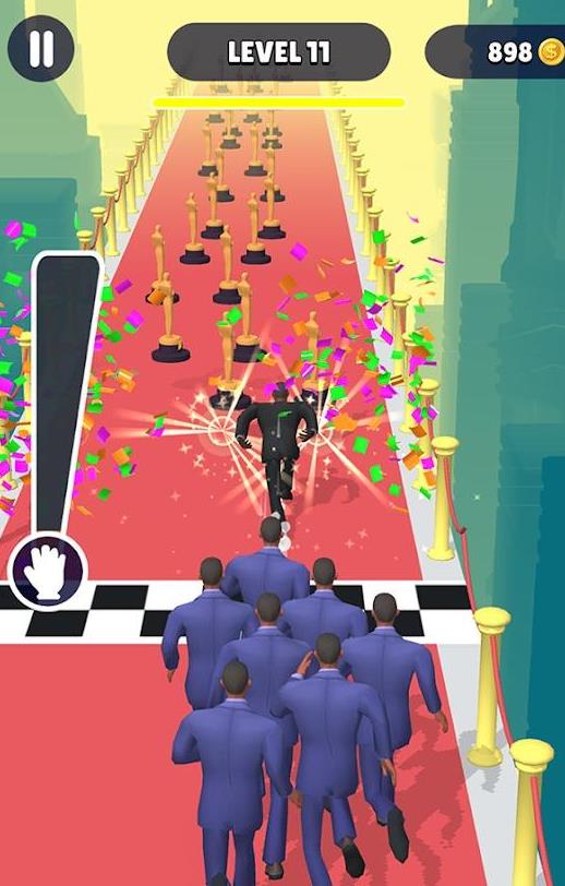 游戏以恶搞风格为核心,吸引了大量玩家参与欢乐竞技。精致的画面配合幽默的场景设计,让每次跑酷都充满惊喜。多人联机模式让你可以和朋友一起享受这场红毯闹剧,体验独特的休闲乐趣。