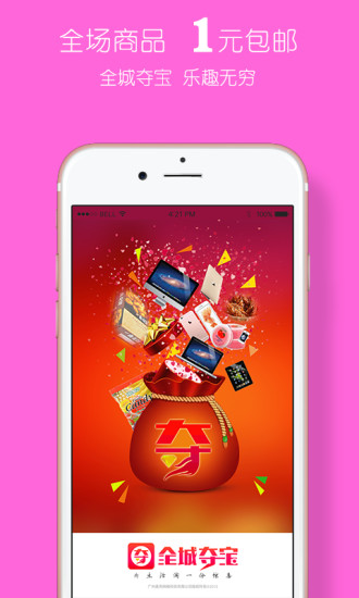 全城夺宝提供时尚的新型趣味购物平台,1元购买全场任何商品,手机、平板、单反、时尚智能设备、零食等。通过大家的力量,实现拥有时尚商品的愿望,全新的移动互联网购物模式给你一个惊喜!!!