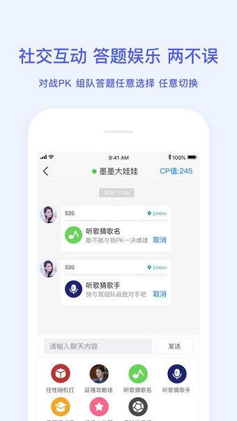 一个大学生专属社交答题互动平台。拥有全新的知识答题对战比拼,快来用知识和运气,去赢你的朋友吧!在对战答题,赢取积分,还可以为爱豆投票哦。