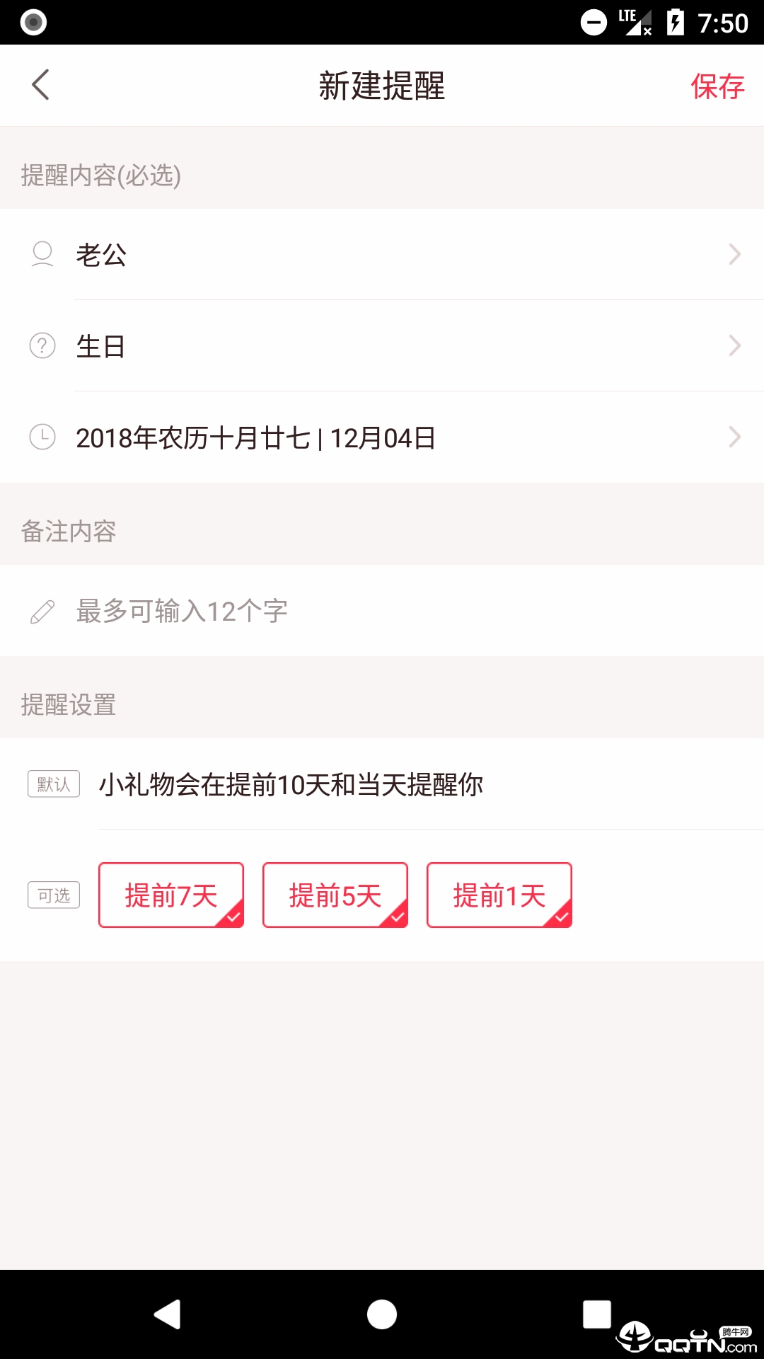 贴心记录生日和纪念日,支持农历与公历两种提醒方式。系统默认提前10天和当天发送送礼提醒,用户也可自定义提醒时间。