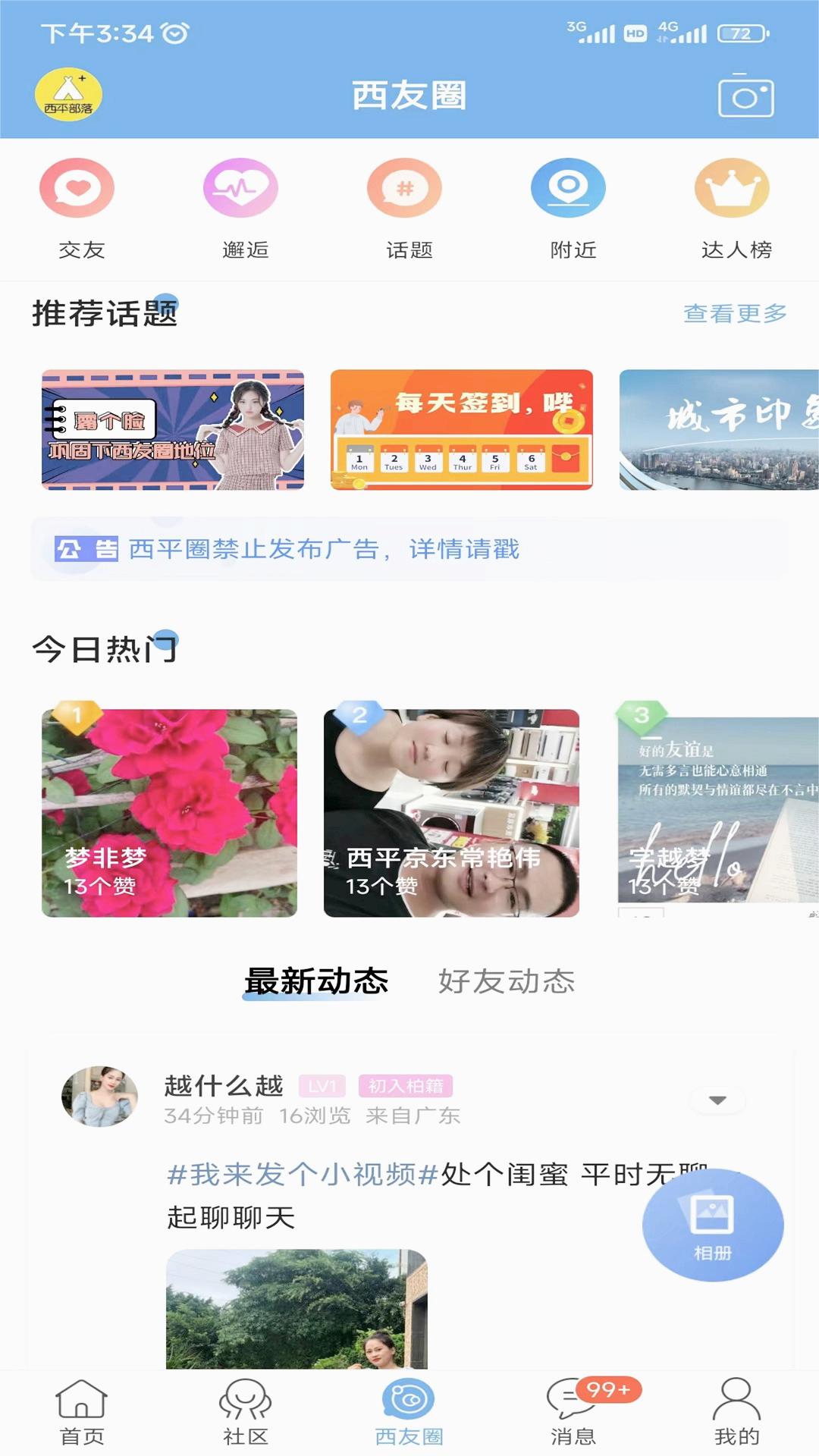这款专为西平人设计的本地生活服务APP,整合了房产交易、婚恋交友、同城拼车、新闻资讯、招聘求职等实用功能,全方位满足西平居民的日常需求,打造专属西平人的线上社区。