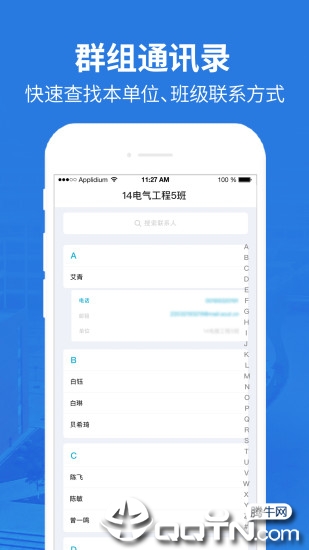 提供群组通讯录功能,可快速查找本单位、本班级小伙伴的联系方式;