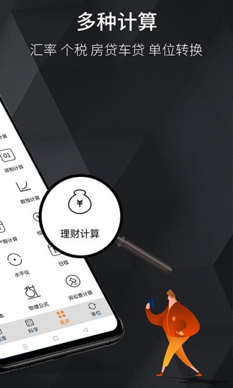 这款集多功能于一体的计算器,包含标准计算、科学计算、汇率换算、房贷车贷计算、五险一金查询、日期计算、进制转换等实用功能。支持无限条历史记录存储,具备语音播报、大写转换、结果复制等贴心功能,操作简单直观,是您工作生活中的得力助手。