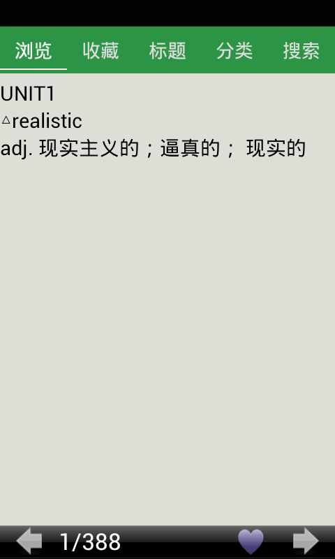 收藏功能,能够随时收藏记得不牢的单词,方便反复学习
