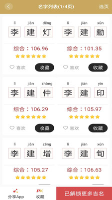 可收藏自己喜欢的名字以备选择