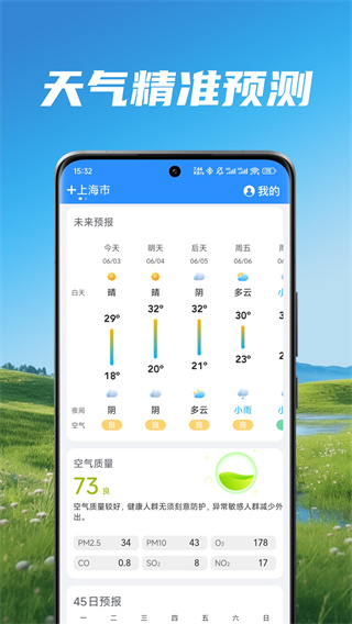 《天气》是一款功能全面的天气预报应用,为用户提供精准的天气数据和贴心的生活建议。无论是日常出行还是户外活动,这款APP都能成为您的得力助手。