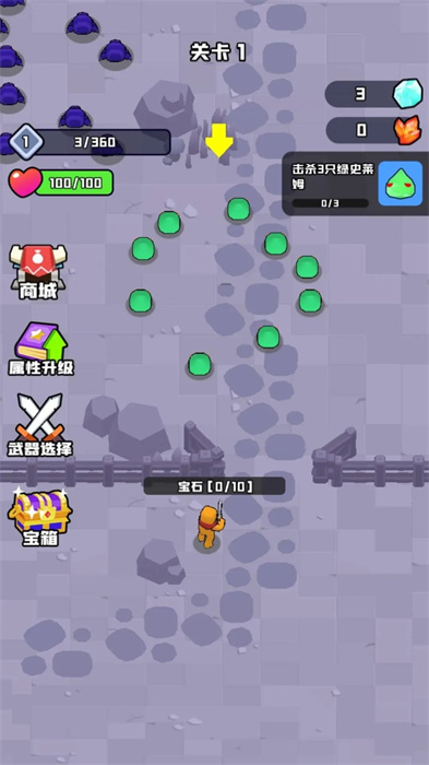 游戏内玩家还需要完成攻击消灭史莱姆,到达一定的数量获得钻石的奖励,还能解锁新的任务。