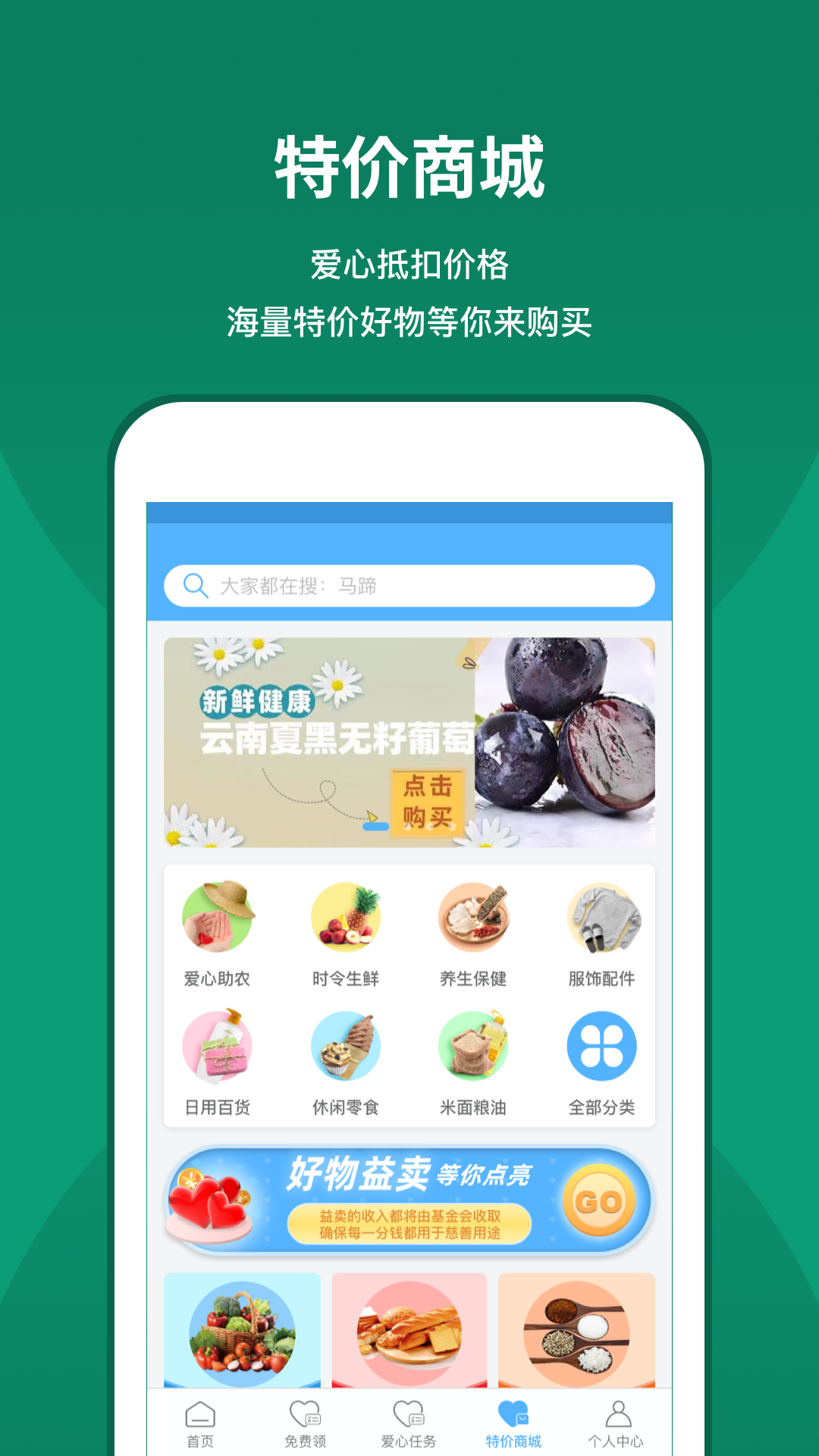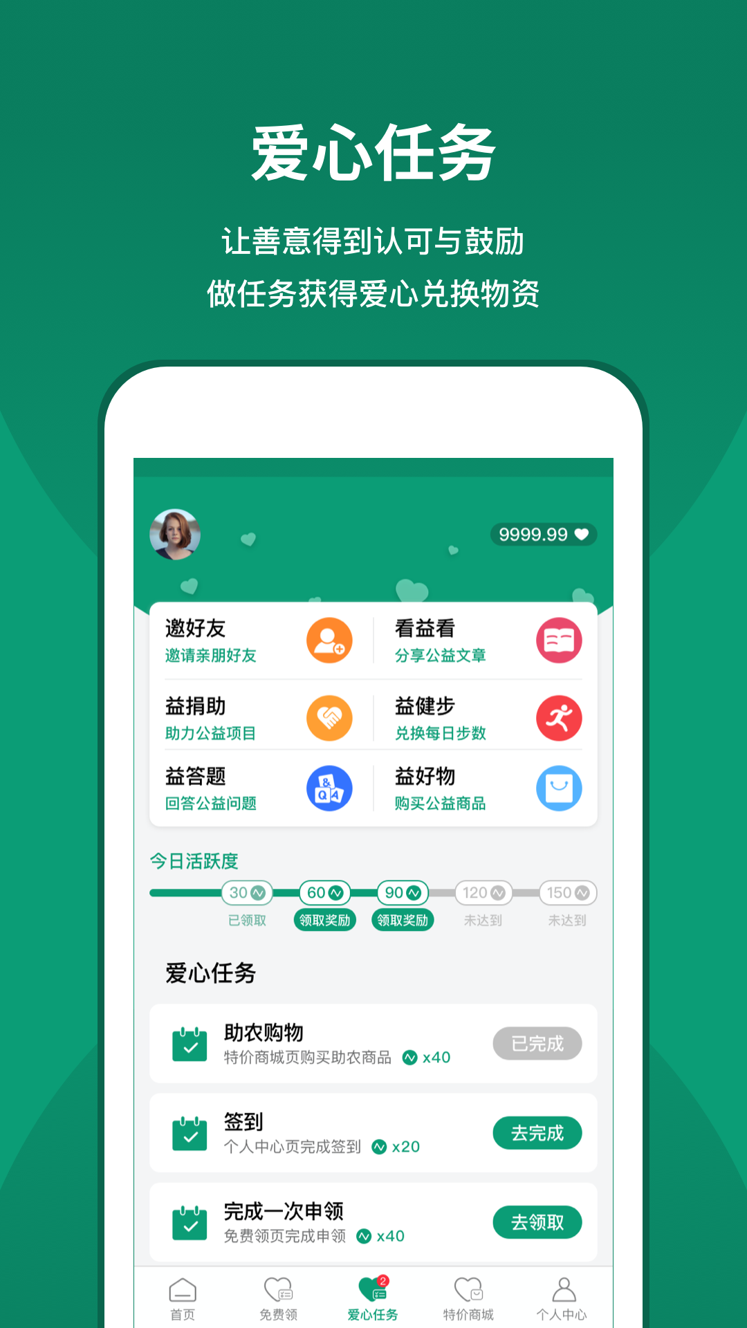 受助者通过完成指定公益任务积累爱心积分,免费兑换所需物资;
