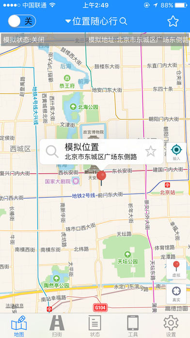 一键位置模拟:只需点击地图任意位置,即可快速模拟到达目标地点。