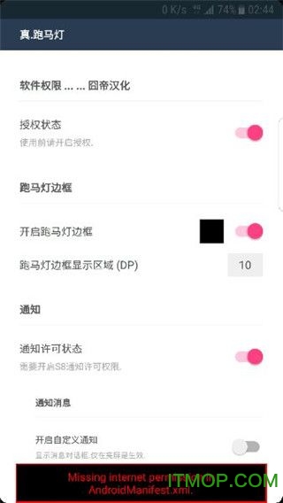 打开开启跑马灯边框开关,注意如果安装其它app出现异常无法点击请开挂了可以展示关闭这个开关