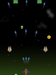 当年在小霸王游戏机上玩过的经典老游戏"小蜜蜂"(又名:侵略者),让人仿佛又回到了那个充满童真的年代。这款结合了"小蜜蜂"式的游戏特色,更加复古回荡;犹如令人回想小时候跟表弟两人抢着游戏手柄,一顿互拼操作的时光里。