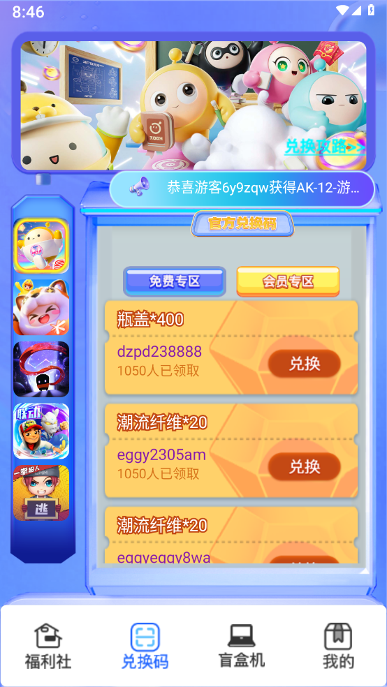 支持王者荣耀、火线、和元梦等热门游戏的兑换码领取;