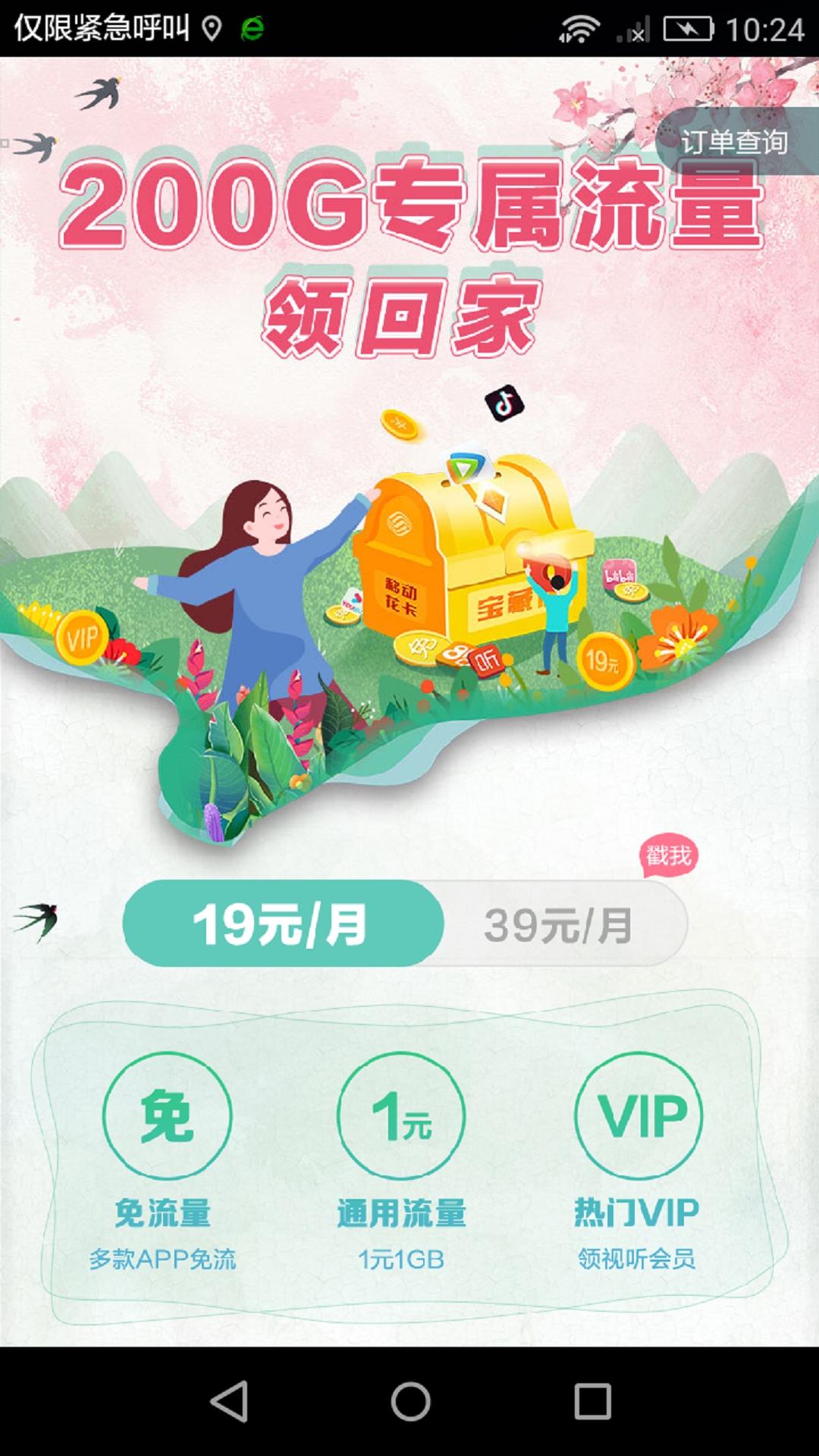 移动花卡App是中国移动官方推出的服务应用,专为"移动花卡-宝藏版"用户提供便捷的线上服务。通过这款应用,用户可以轻松办理新卡、查询订单状态,还能享受200G专属流量福利。更令人心动的是,用户可尊享中国移动旗下精品APP的免流特权,涵盖热门视频、音乐平台,更有月度会员和虚拟币等专属权益等待解锁。