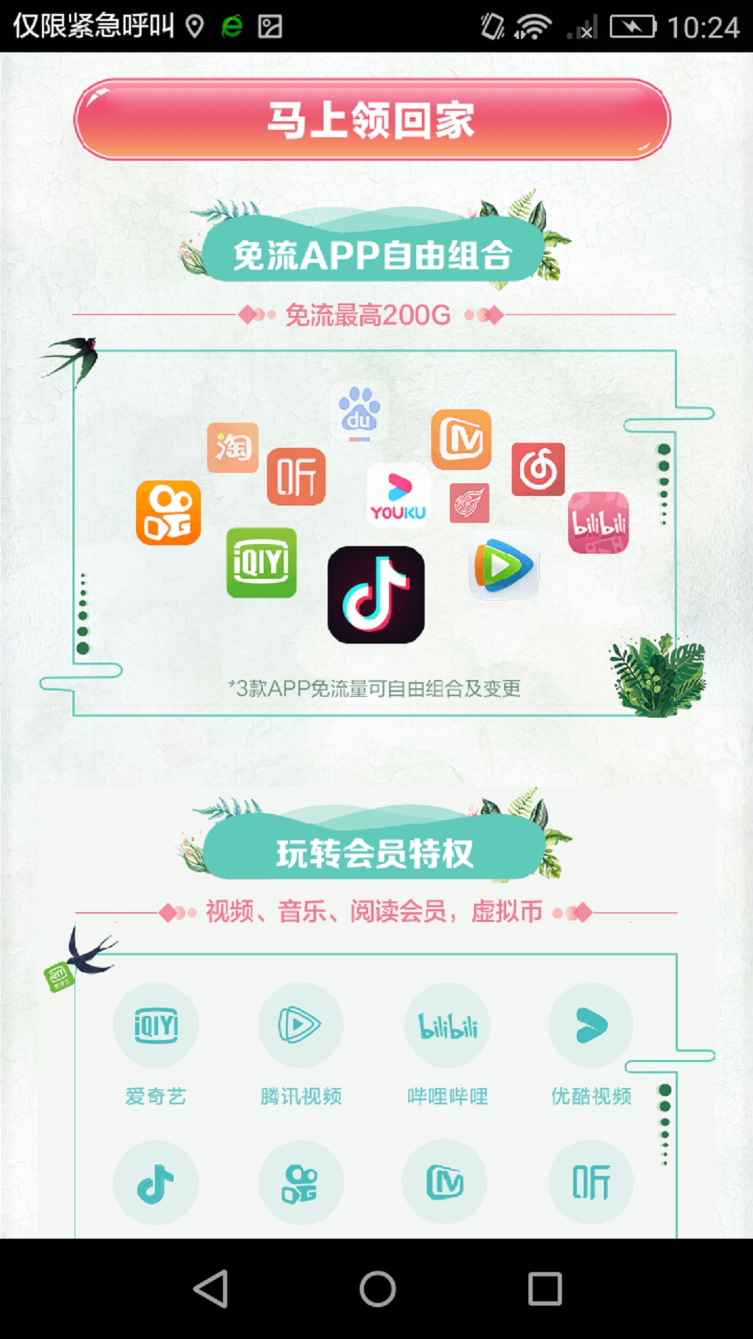 套餐生效后,请通过"移动花卡"公众号或中国移动APP领取精品APP免流权益。