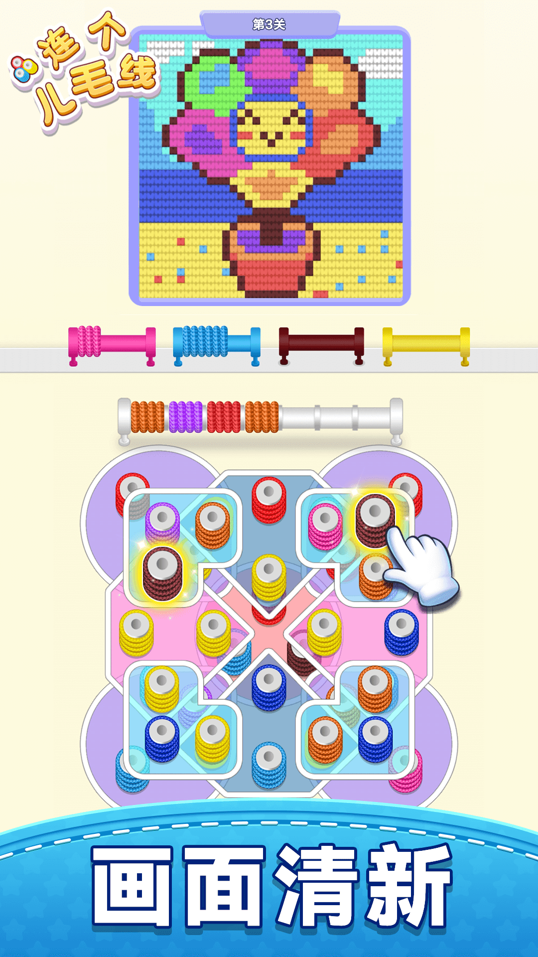 毛线拼图三消除带来全新的益智体验,将传统消除玩法与创意毛线元素巧妙结合。这款游戏通过独特的连线消除机制,让玩家在编织般的美妙过程中享受解谜乐趣,每一关都充满惊喜与挑战。