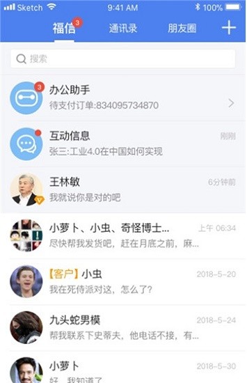 即时通讯:支持单聊和群聊,促进业务沟通