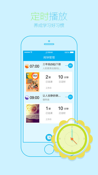 定时播放:家长可以通过设置若干个闹钟,定时播放对应的课文,同时可以让小朋友充分利用睡前、醒来的黄金时间来记忆、听读课文。