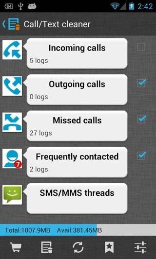 1TapCleanerPro可以一键或定时自动清除快取、搜寻纪录和电话纪录,更重要的是你不再需要ROOT你的手机,就可拥有这些功能!如果你有手机空间不足的困恼,常要管理应用所占用的空间,或是常要清除个人隐私相关纪录,本应用是你必安装的良伴。