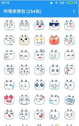 哔哩表情包app无需联网,支持保存表情,QQ、微信、TIM一键发送,部分表情提取自Bilibili,部分表情来自于互联网,已包含253张,持续更新中,包含各种gif动图与小表情。